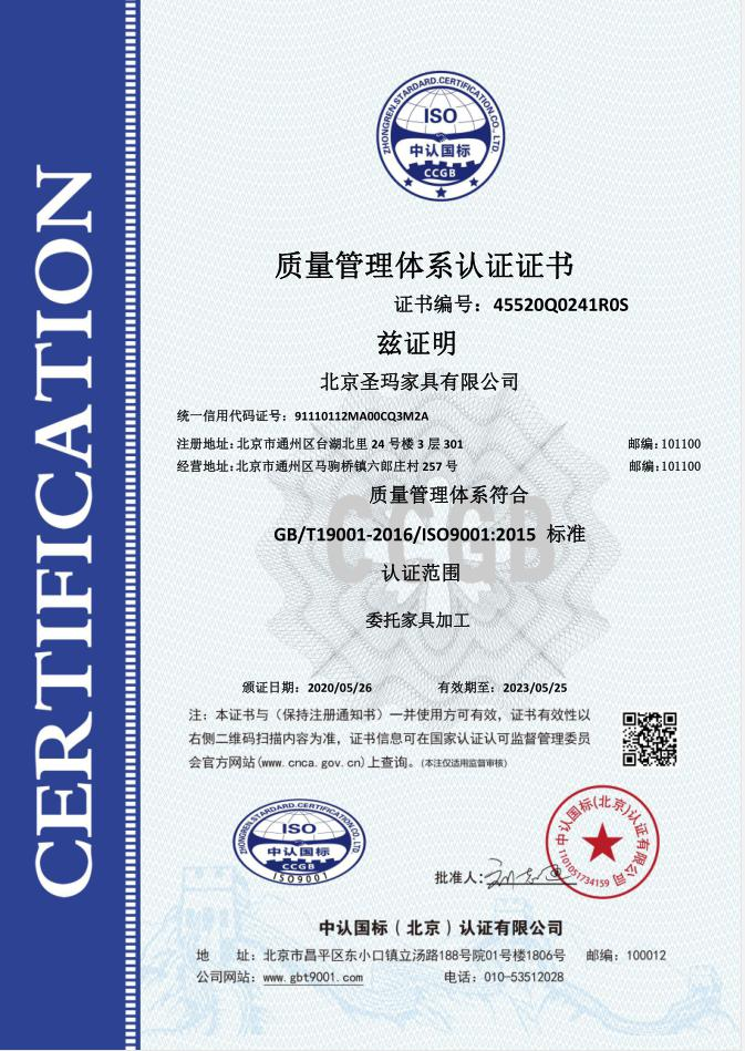 北京圣瑪家具有限公司是以設計研發(fā)、生產、銷售、服務為一體的專業(yè)化辦公家具制 造企業(yè);主要經營辦公家具、校園家具、實驗室家具、酒店套房、全屋定制類等家具。 公司成立于 2017 年,生產基地位于天津市蘆臺經濟開發(fā)區華澳盛世家具有限公司院 內,占地面積約 10000 平米,擁有員工 100 人左右,其中高級技術人員達 15%以上。 公司采用了南興、先達系列等先進生產設備,建立專業(yè)流水線,具備先進的生產及加 工能力。公司設有專業(yè)的產品設計部、運營部、質檢部等,提供專業(yè)的 CAD 平面圖、立面 圖級效果設計圖紙。 使用優(yōu)質的進口原材料及配件;嚴把進貨渠道,所用材料符合國家環(huán)保標準要求。款 式上依據人體工程學原理,追求多樣化的設計風格。按照 “ISO900/ISO14001 族標準” 的 要求,嚴格控制每一個環(huán)節(jié)。 并本著“以質量求發(fā)展,向管理要效益,顧客滿意為焦點,持續(xù)改進,共筑偉業(yè)”的 宗旨方